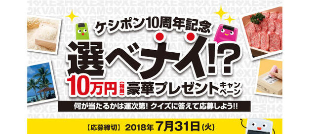 プラスは、個人情報保護スタンプ「ケシポン」のシリーズ10周年を記念し、「選べナイ!?10万円(相当)豪華プレゼントキャンペーン」を2018年4月27日(金)からスタートした。応募期間は2018年7月31日(火)23:59まで。