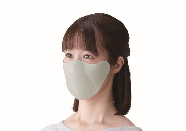 マスクは1個2枚入り、色はライトグレーで展開。生地は、表地にポリエステル、中材にウレタンフォーム、裏地にポリエステルを使用している。