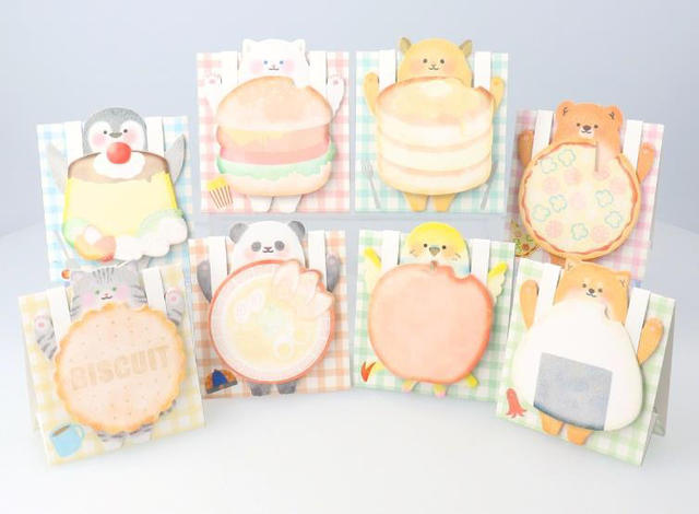 ホールマーク商品で定番となっている可愛らしい動物モチーフの新アイテムとして、遊び心あふれる付箋が登場。食べ物柄と動物柄の2柄の付箋が重なってセッティングされているので、まるで動物が仮装をしているように見えるユニークな機構となっている。海外のハロウィンや仮装グッズでよく見られる、食べ物に仮装するというユニークさに着想を得て開発された。立てられるスタンドタイプのため、ワークスペースや勉強机の癒しとしてもおすすめ。