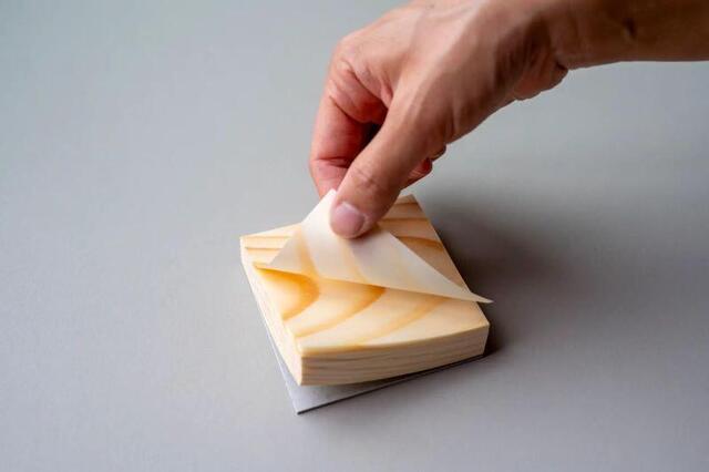 - 【新製品】アカマツを紙のように薄く削って作った「木のブロックメモ」