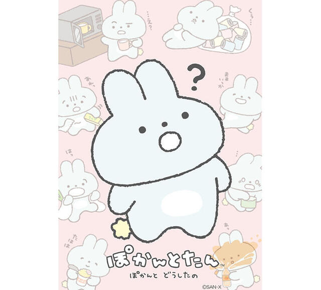 「ぽかんとたん」は、どこか抜けてるちょっぴり忘れっぽいうさぎのキャラクター。少女向けコミック雑誌発行部数NO.1誇る大人気漫画雑誌『ちゃお』(小学館)で2023年9月号から10カ月にわたり漫画が連載され、Xでは忘れっぽい姿に共感者が続出している、今人気急上昇中のキャラクター。