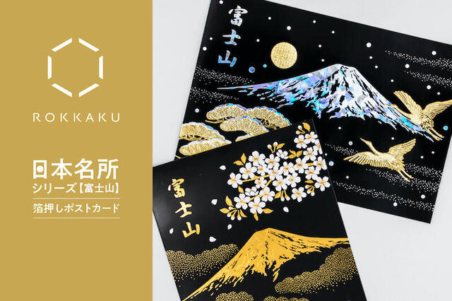 フタバは、箔押しブランド「ROKKAKU」より、日本を代表する名所の魅力を箔押し加工のみで表現した「富士山 箔押しポストカード」(2種、各税込500円)を2025年1月13日に発売する。
