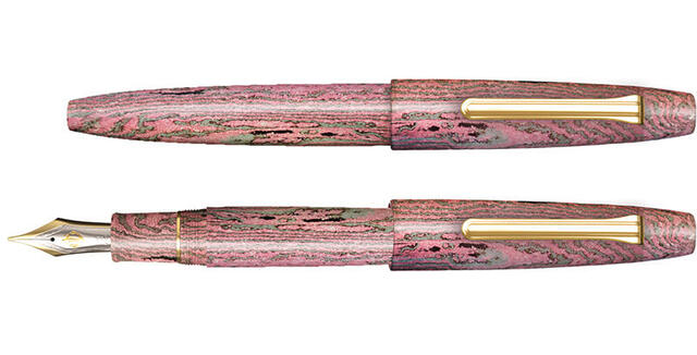 セーラー万年筆は、「長刀研ぎエボナイト万年筆 梅咲」を2025年10月18日から世界500本(国内250本、海外250本)限定で発売している。超大型の21金長刀研ぎペン先を搭載し、重ねたエボナイト材にチラシ細工を施した重厚感のあるエボナイト万年筆で、字幅は中細、中字、太字の3種、ペン先21金(超大型、長刀研ぎ)。価格は税込19万8,000円。
