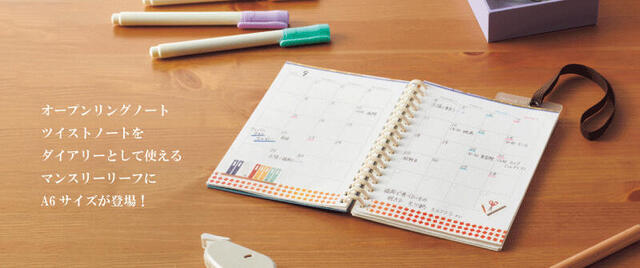 - 【新製品】「オープンリングノート」にダイアリーとしても使えるA6マンスリーリーフ