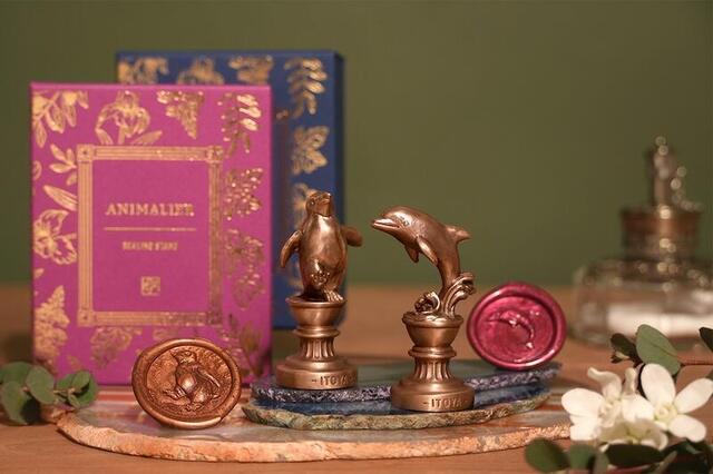 〈アニマリエ〉は、世界でラッキーモチーフとして親しまれている動物と自然の美しさを写実的に表現した伊東屋オリジナルのシーリングスタンプ。ウサギ、ペンギン、フクロウ、カエル、カメ、イルカ、キツネ、ゾウの全8種を展開し、自然界の動物の子どもたちが持つ美しさや優雅さ、愛らしさを精巧に表現している。青銅(ブロンズ)製のボディはミニオブジェとしても楽しめる仕上がりで、現代のライフスタイルにも調和するデザインとなっている。