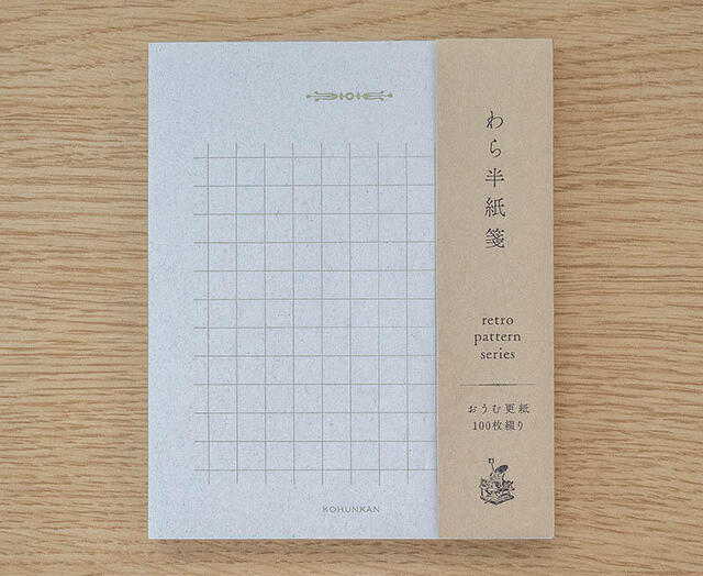 「わら半紙箋」は、わら半紙に活版印刷でマス目模様を印刷したアナログなメモ用紙です。上の方にレトロなモチーフも印刷されています。今どきの印刷物にはない温かみが感じられますよね。小学生の頃、学校でもらう算数のドリルとかおたよりなどのプリントの類いは、全てわら半紙にガリ版刷りされたものだったので、手に取って見ていたら子どもの頃の記憶がよみがえって、懐かしさがこみ上げてきました。紙の匂いも、あの時のプリントと同じです。